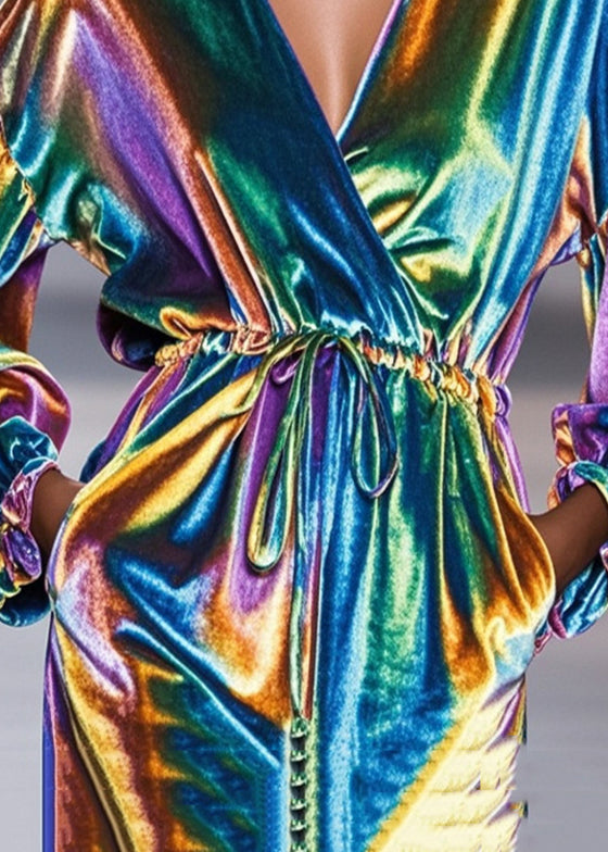 Silm Fit Gradient Color Cinched Silk Velvet Holiday Dress Spring