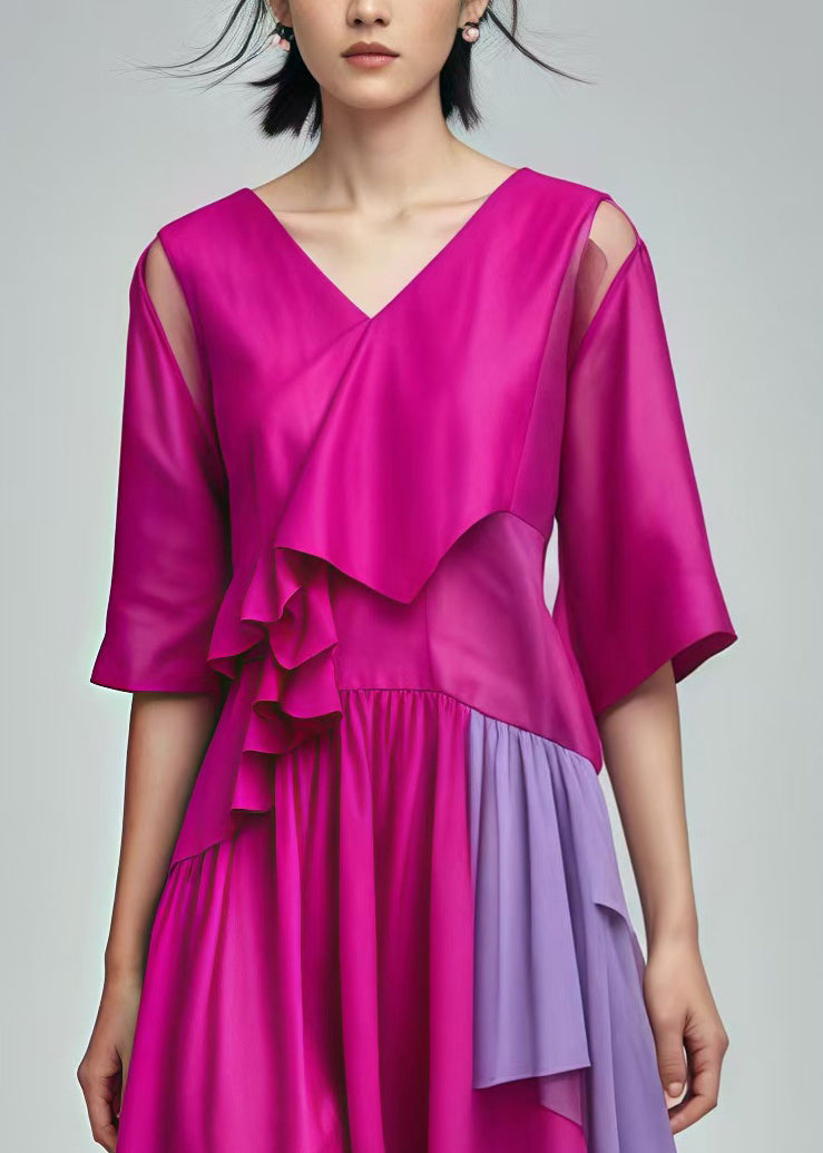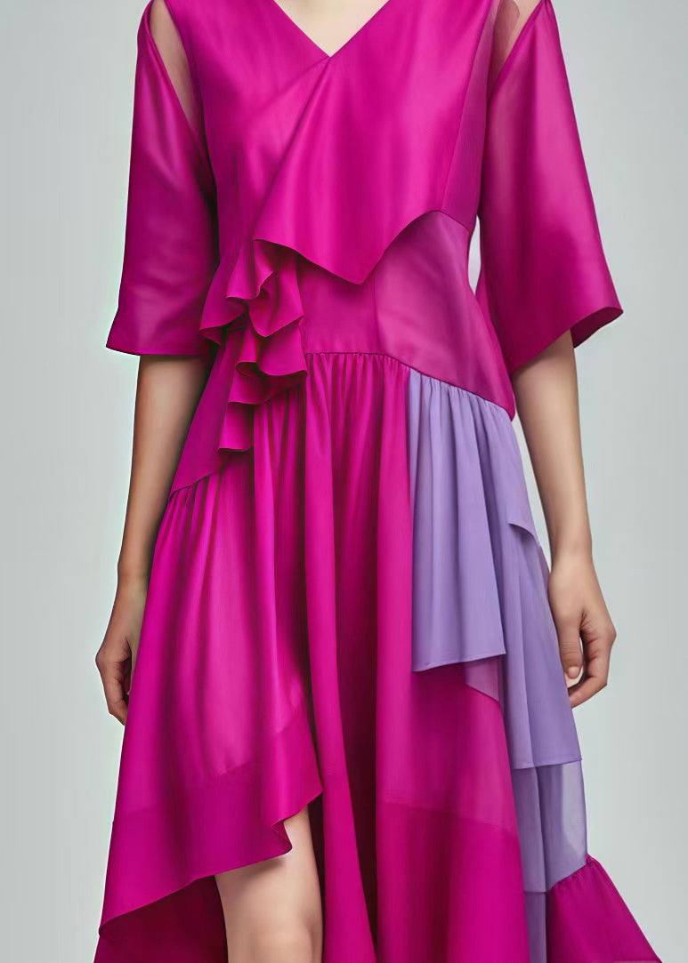 Silm Fit Rose Asymmetrical Patchwork Cotton Dresses Summer