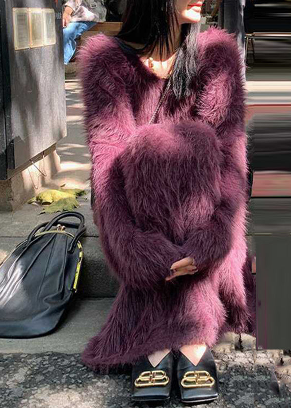 Stylish Grey Mink Hair Knitted Sweaters And Maxi Skirts Two Piece Set Winter