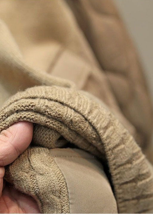 Stylish Khaki Turtle Neck Pocket Patchwork Cotton Filled Knit Sweater Winter
