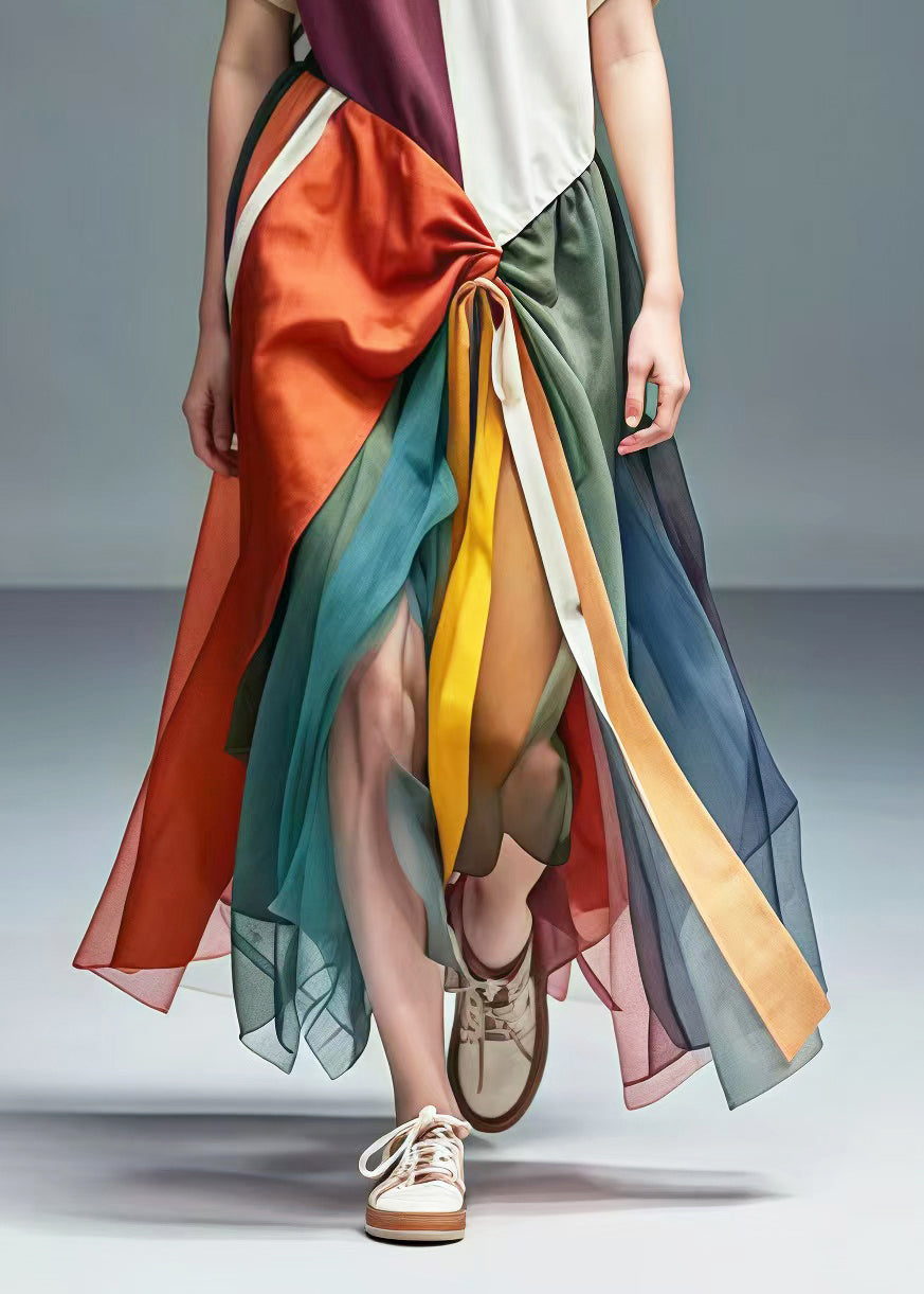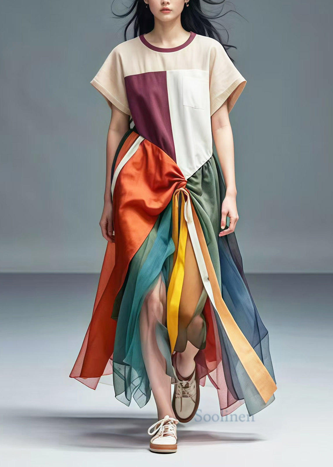 Unique Colorblock Asymmetrical Patchwork Tulle Cotton Dresses Summer