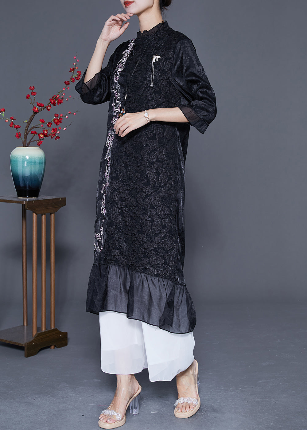 Vintage Black Embroideried Patchwork Jacquard Silk Dress Bracelet Sleeve