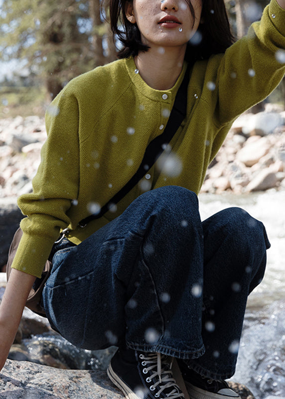 Vintage Green O-Neck Cozy Woolen Knit Cardigan Long Sleeve