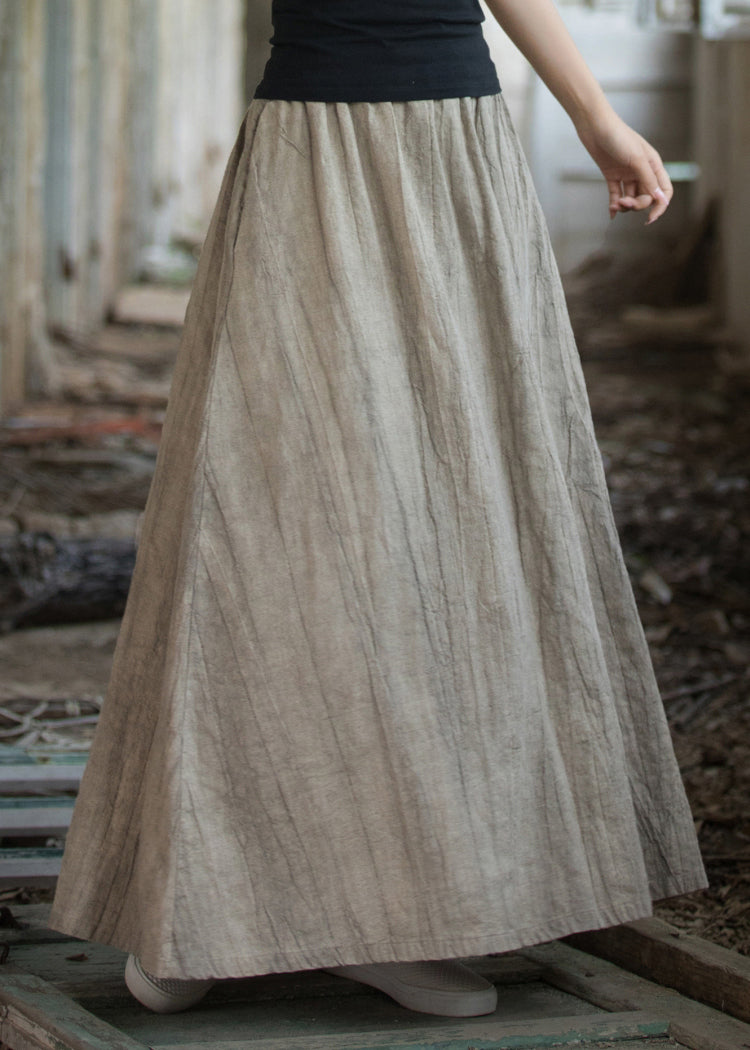 Vintage Tea Brown Tie Dye Elastic Waist Exra Large Hem Linen Skirts Summer