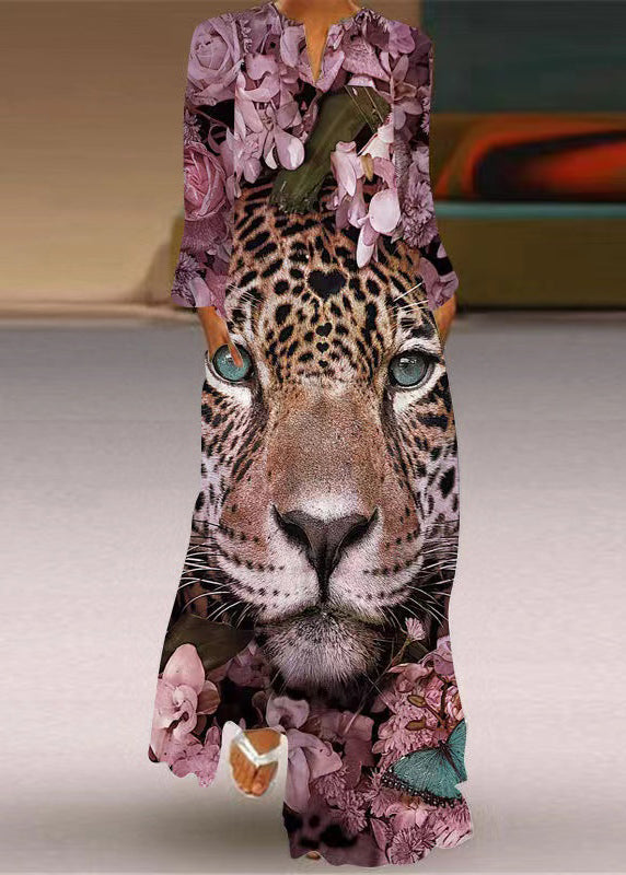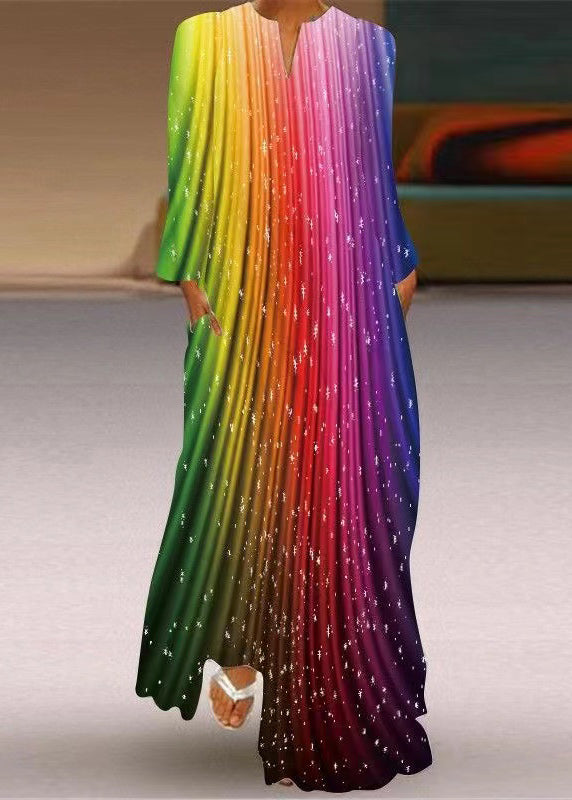 Vogue White Print Pockets Maxi Dress Long Sleeve