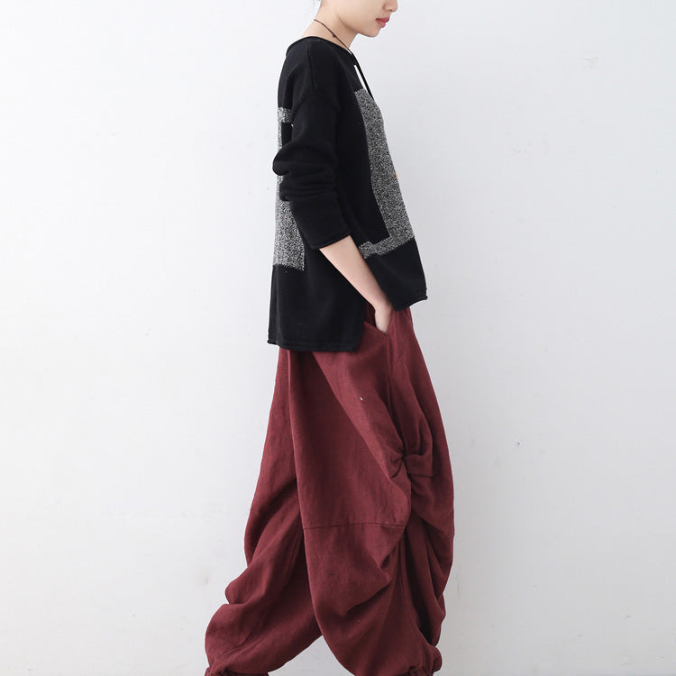 women black knit sweaters fall fashion patchwork sweaters New o neck fall blouse
