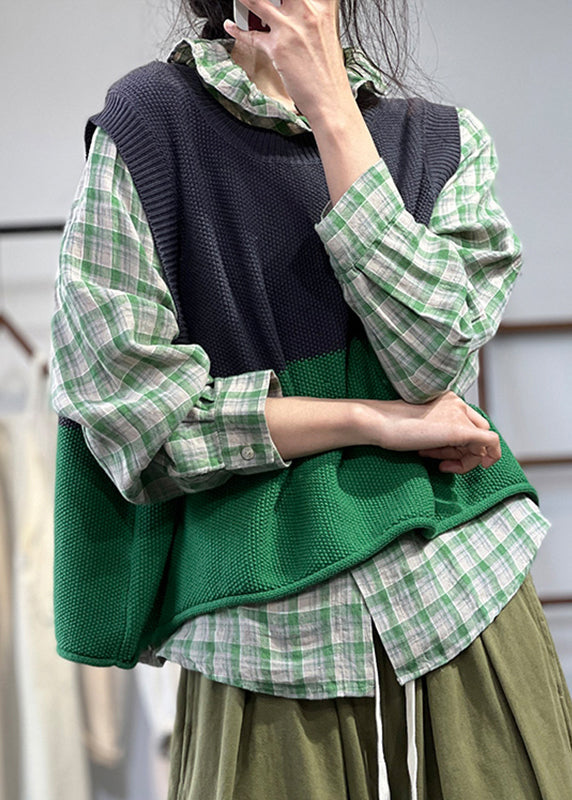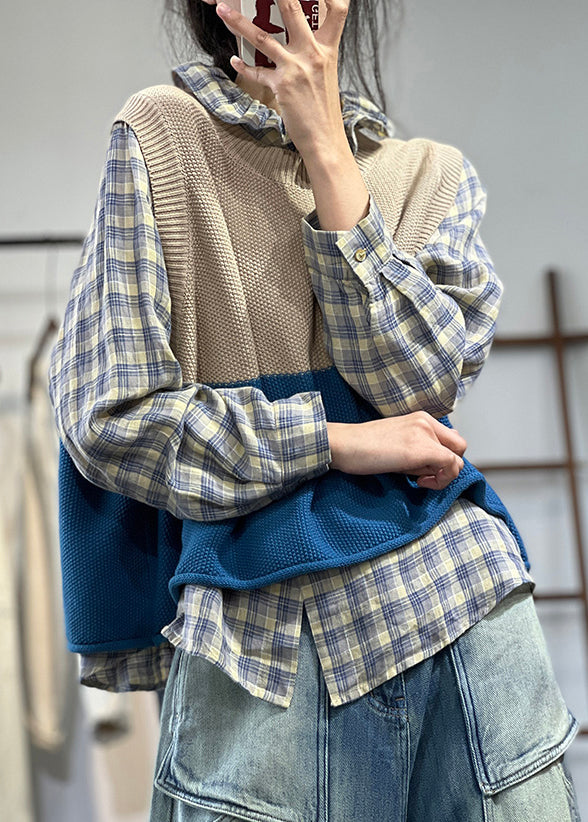 Women Blue O Neck Patchwork Cozy Knit Waistcoat Sleeveless