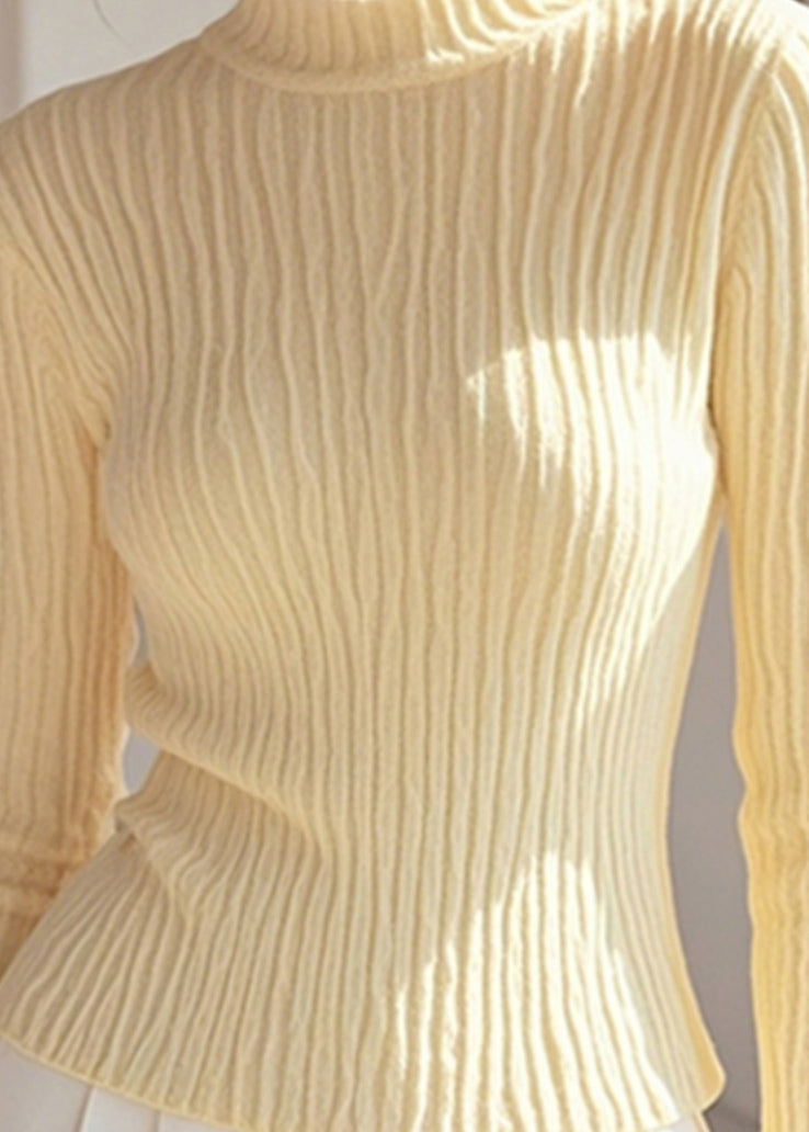 Women Simple Yellow Half High Neck Knit Pullover Spring