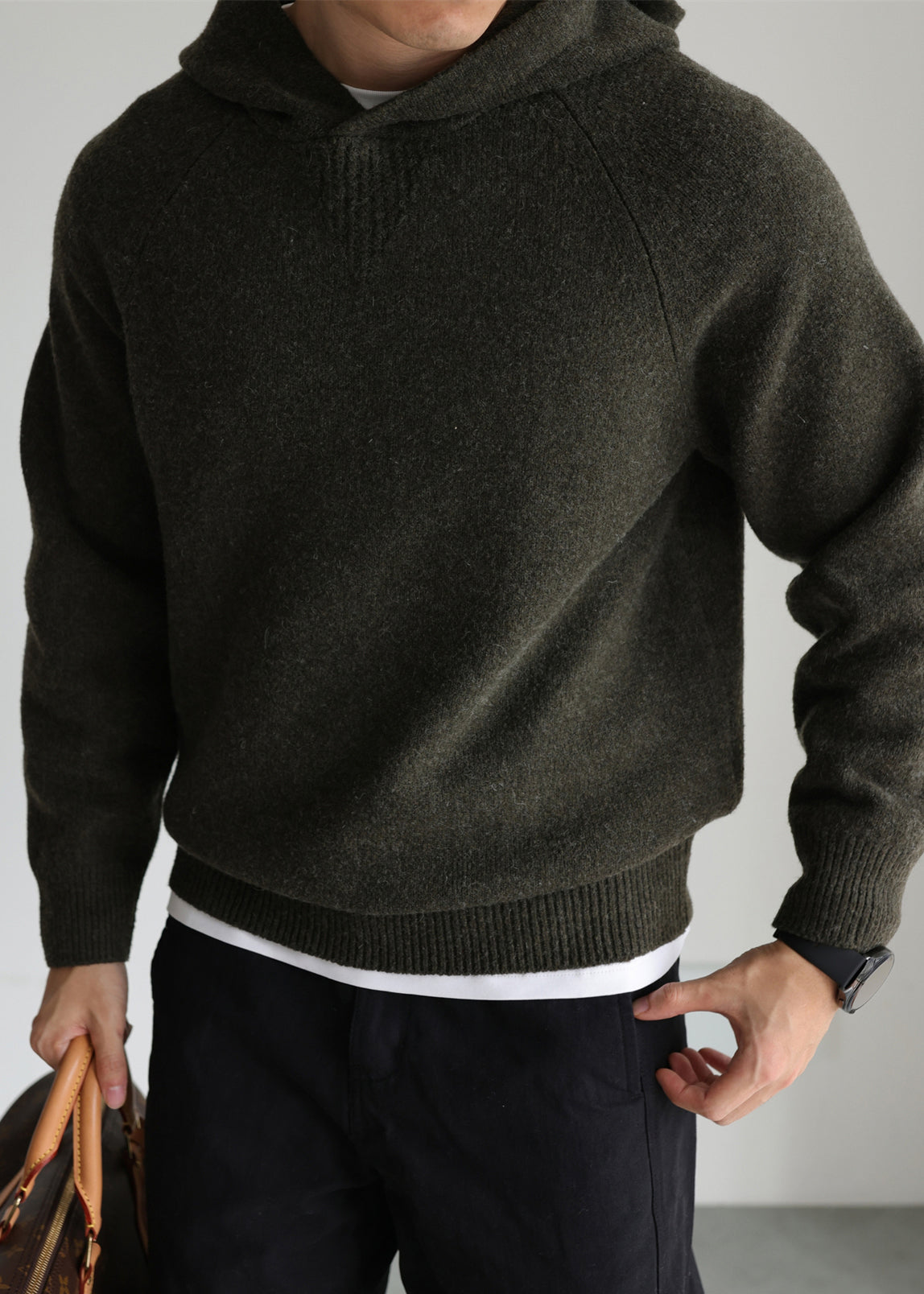 Army Green Cozy Woolen Winter Men Sweater Tops Hooded