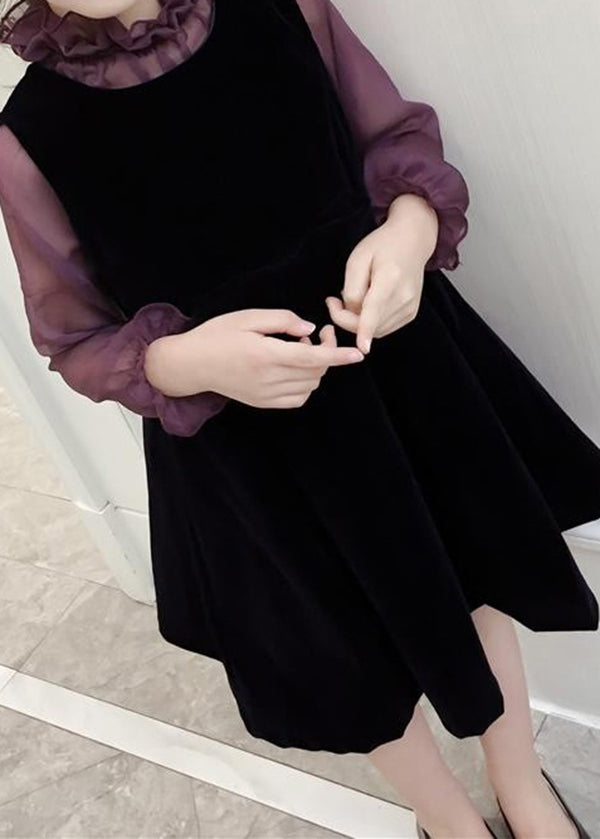Art Purple Ruffled Patchwork Velour Baby Girls Dress Two Pieces Set Fall