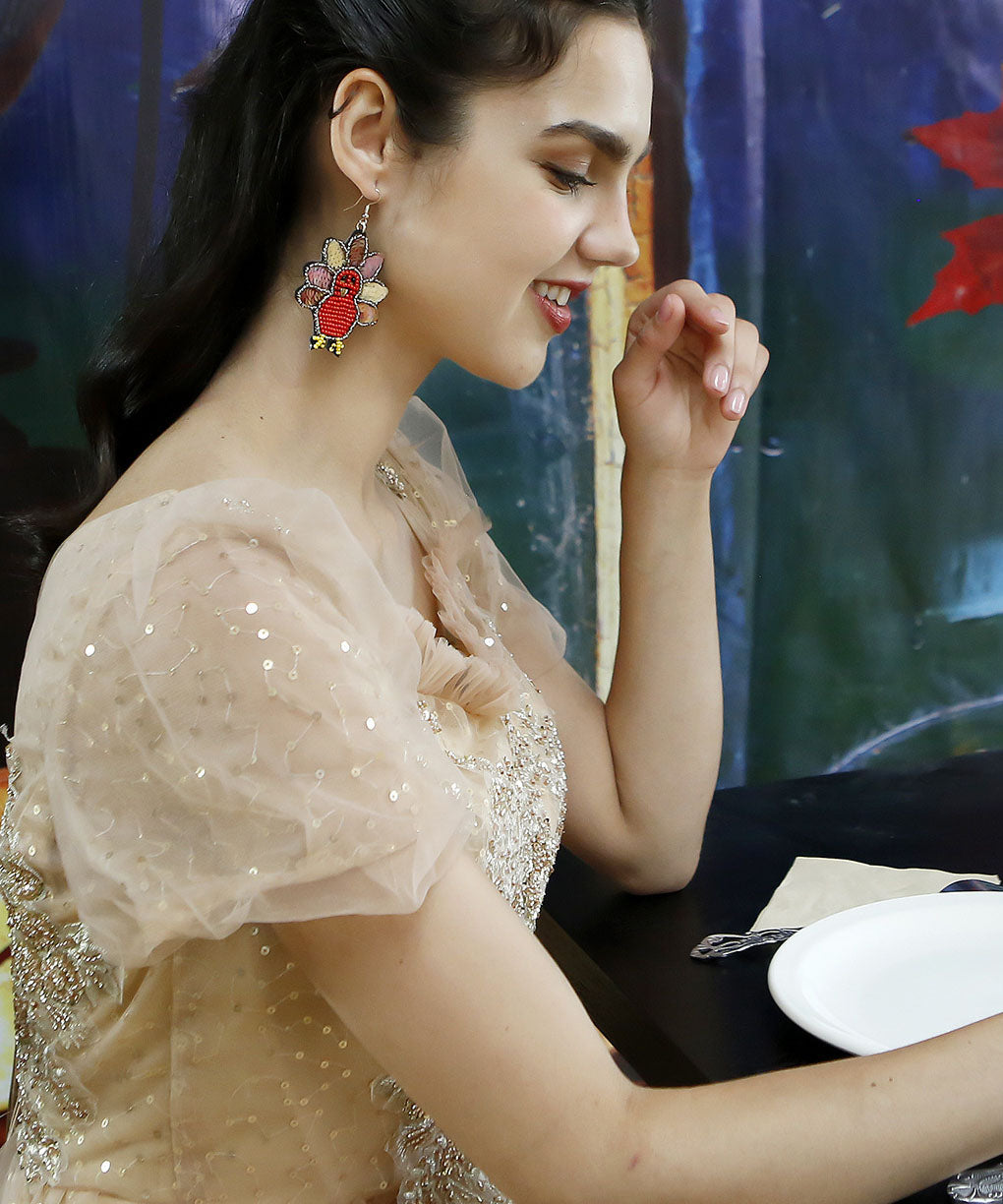 Art Red Copper Sequins Rice Ball Turkey Drop Earrings