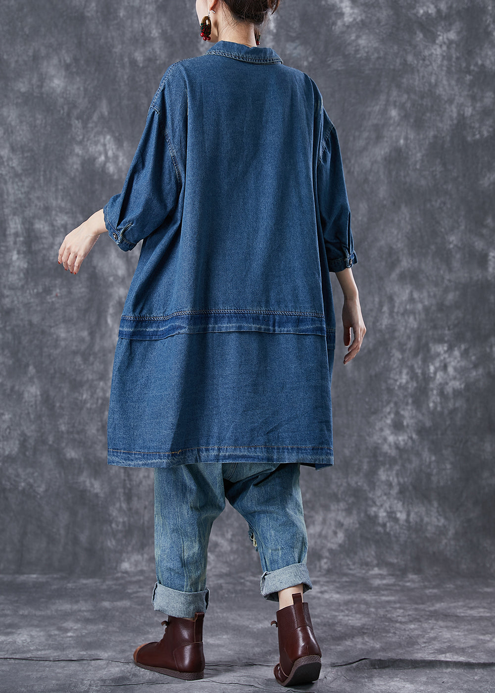 Casual Navy Oversized Patchwork Denim Ripped Trench Coats Bracelet Sleeve