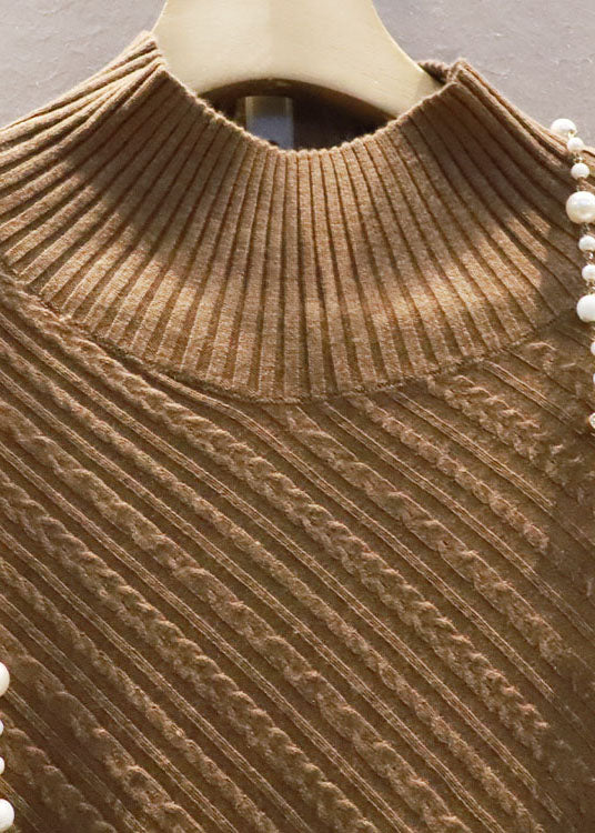 Chic Coffee High Neck Asymmetrical Exra Large Hem Knit Sweater Spring