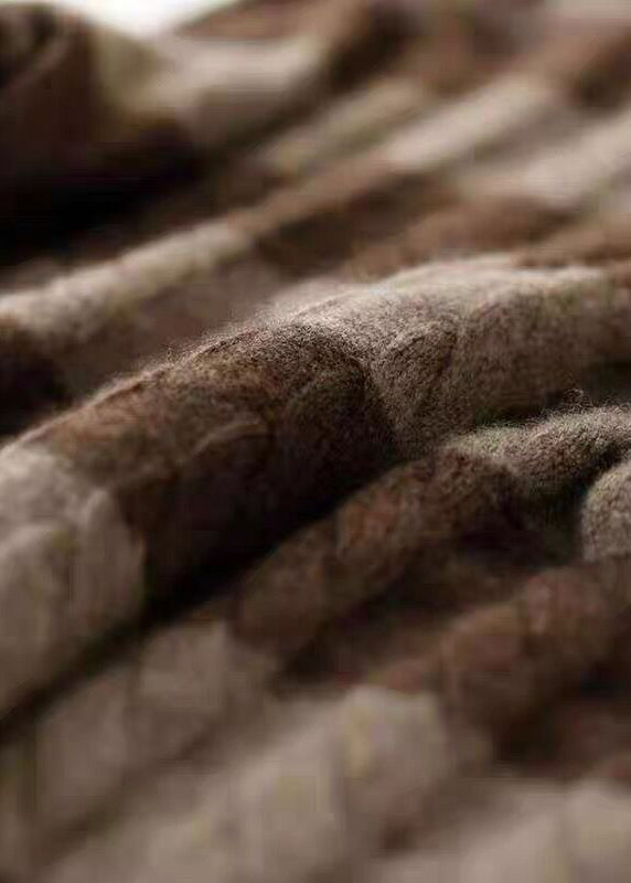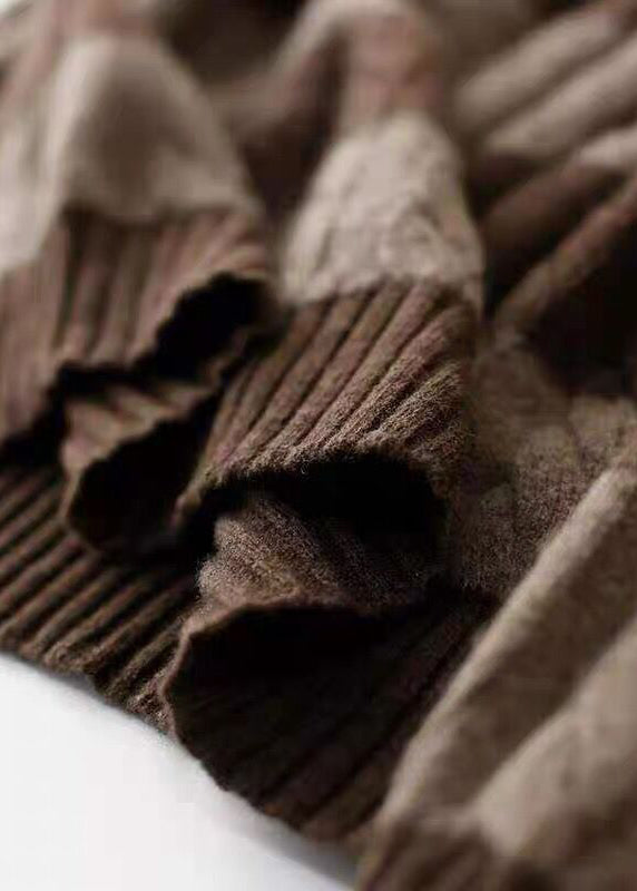 Chic Coffee Striped Hign Neck Thick Patchwork Knit Short Sweater Fall