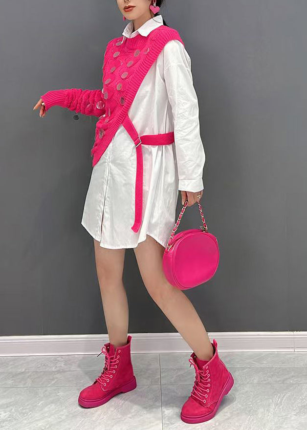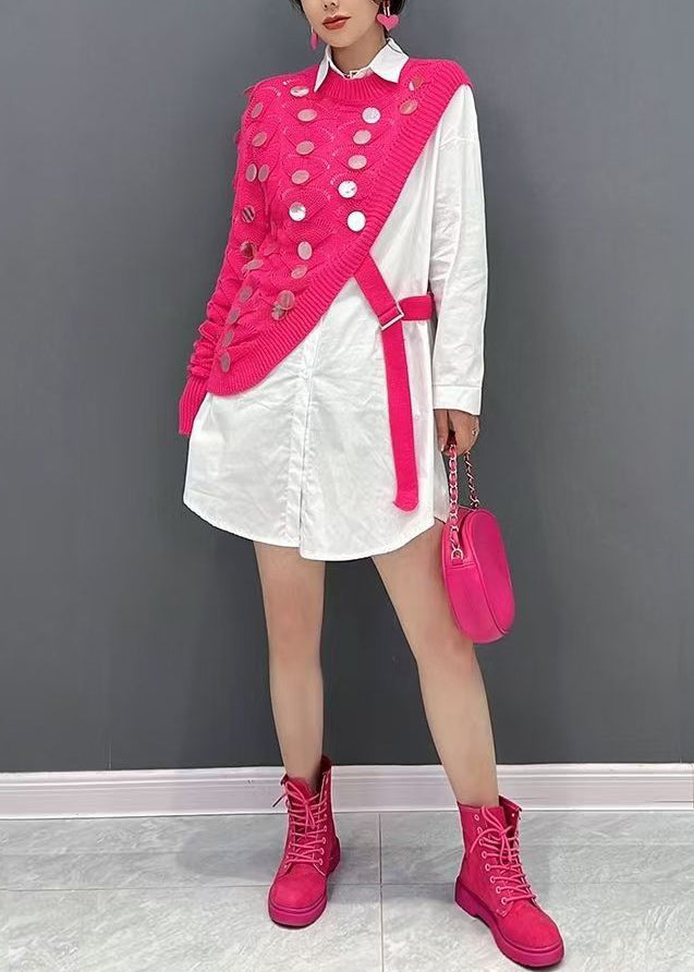 Chic Green Asymmetrical Knit Cotton Sweaters And Shirts Two Pieces Set Fall