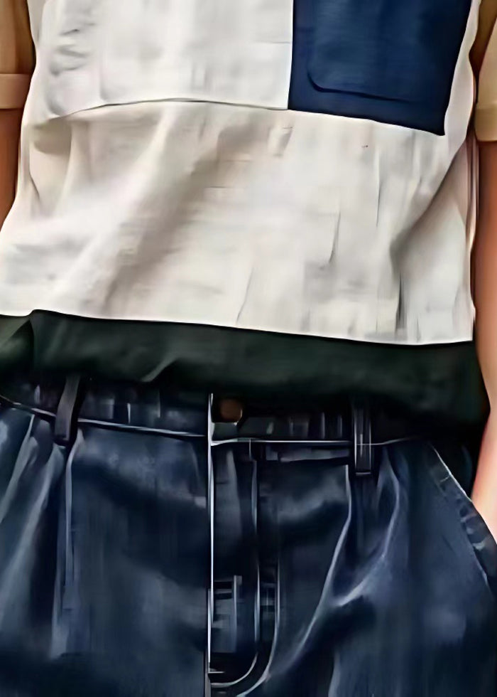 Chic Khaki Oversized Patchwork Linen Beach Vest Summer