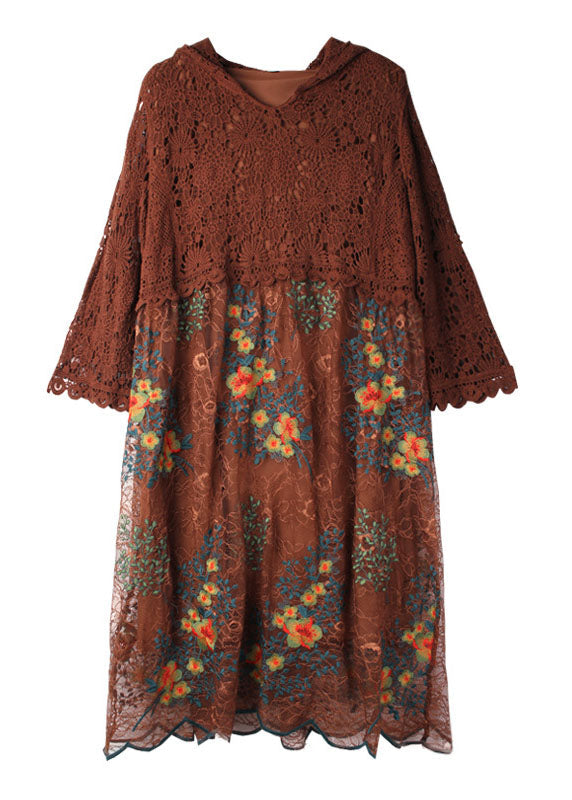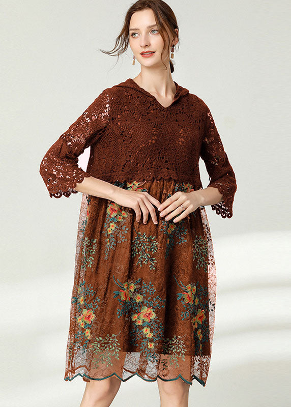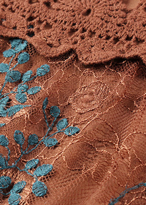 Chocolate Hollow Out Lace Dresses Embroideried Spring