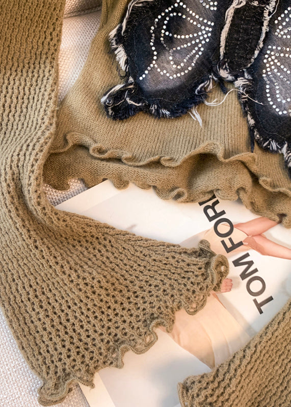 Coffee Patchwork Knit Sweater Tops Butterfly Decorated Fall