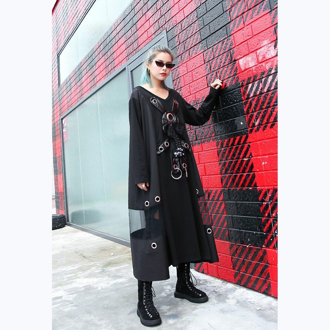 Elegant black pure plus size traveling baggy dresses 2018 v neck Appliques midi dress