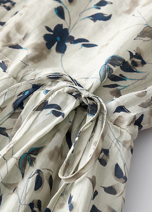 Elegant Light Grey Print Lace Up Cotton Dresses Summer