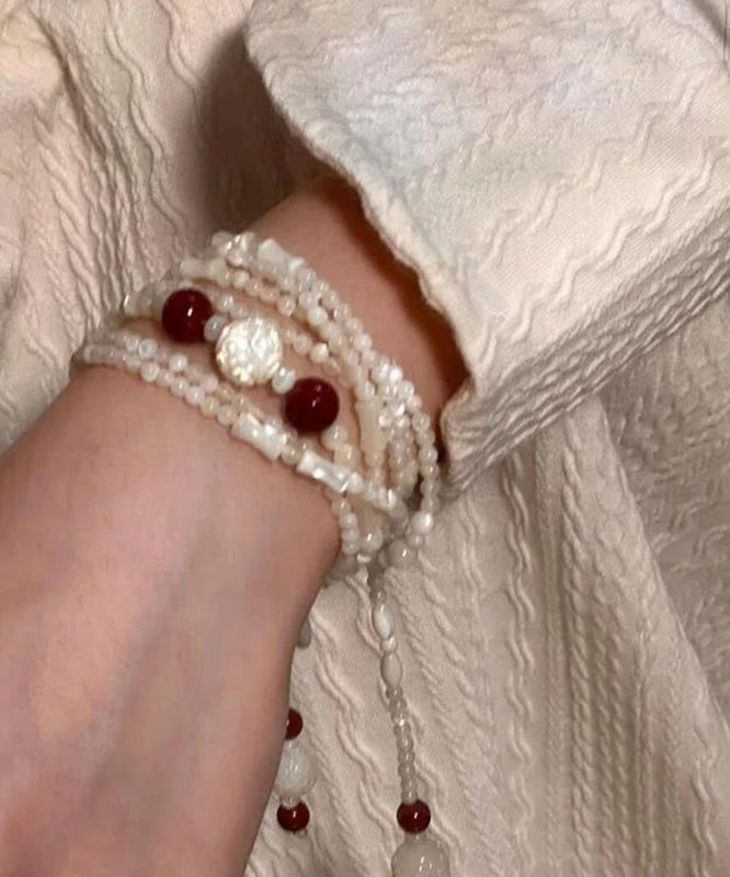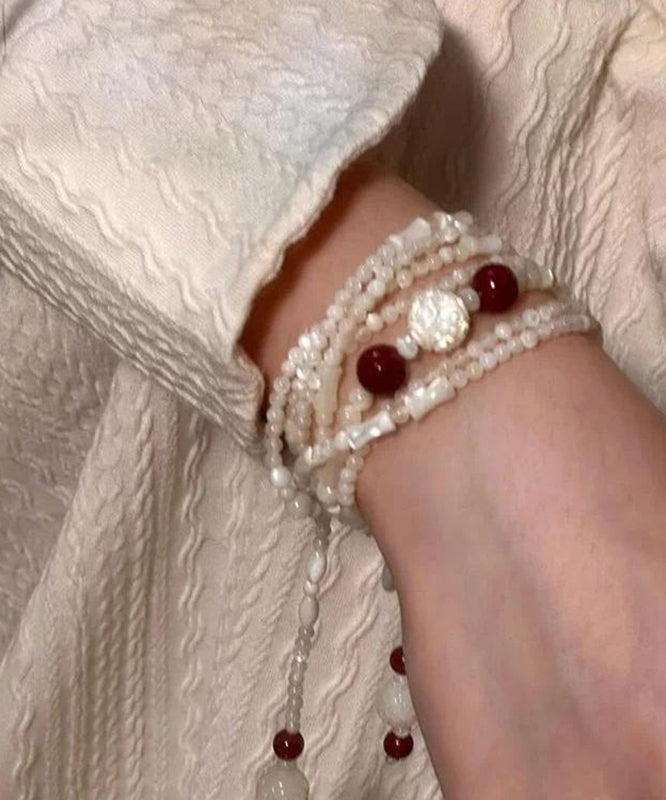 Elegant White Alloy Beading Agate Charm Bracelet