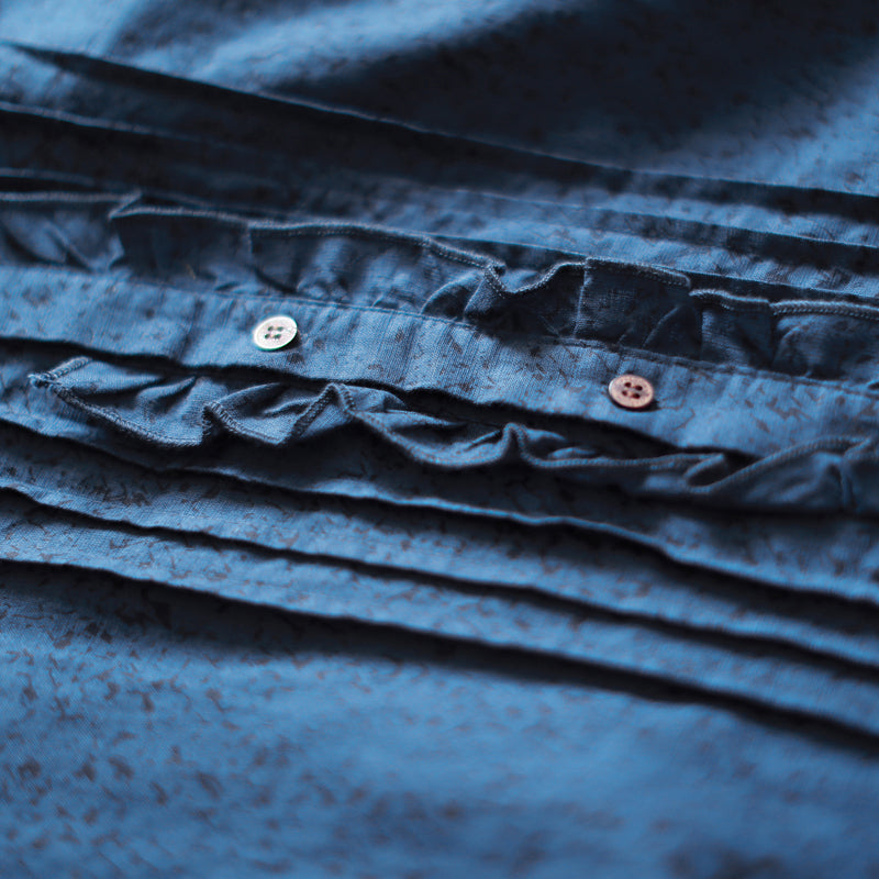 fashion blue linen shift dresses Loose fitting traveling shirt dress 2018 ruffles collar cotton clothing