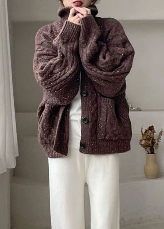 Fashion Chocolate Peter Pan Collar Button Knit Winter Coat