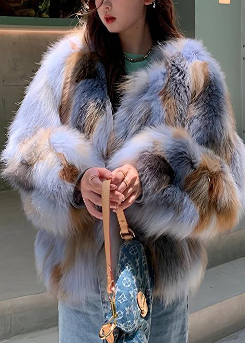 Fashion Gradient Color Oversized Warm Faux Fox Fur Coats Winter