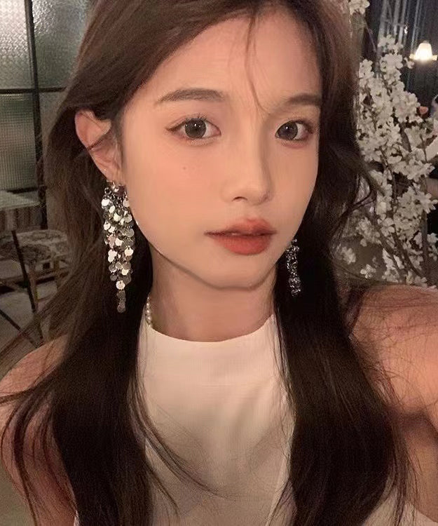 Fashion Silk Metal Alloy Sequins Tassel Drop Earrings