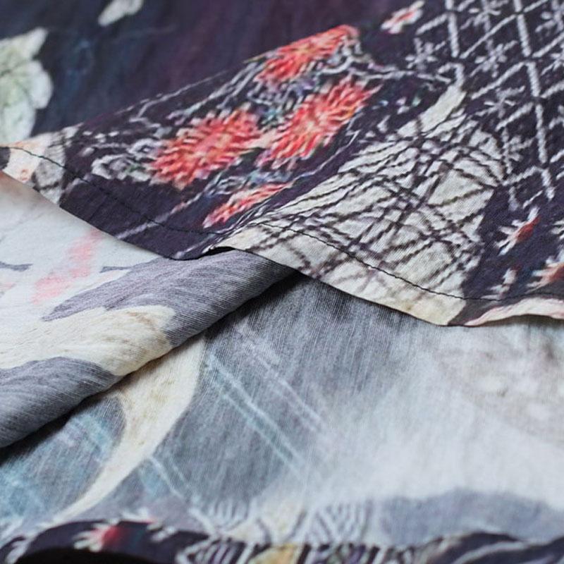 Fine linen summer dress stylish Retro Round Neck Splicing Flax linen Printed Short Sleeve Dress