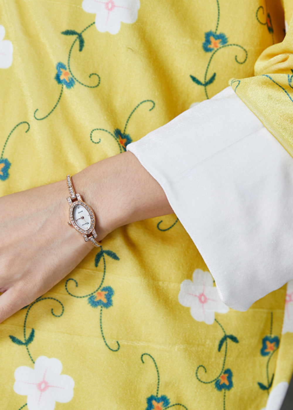 Fitted Yellow Tasseled Floral Silk Velvet Two Pieces Set Spring