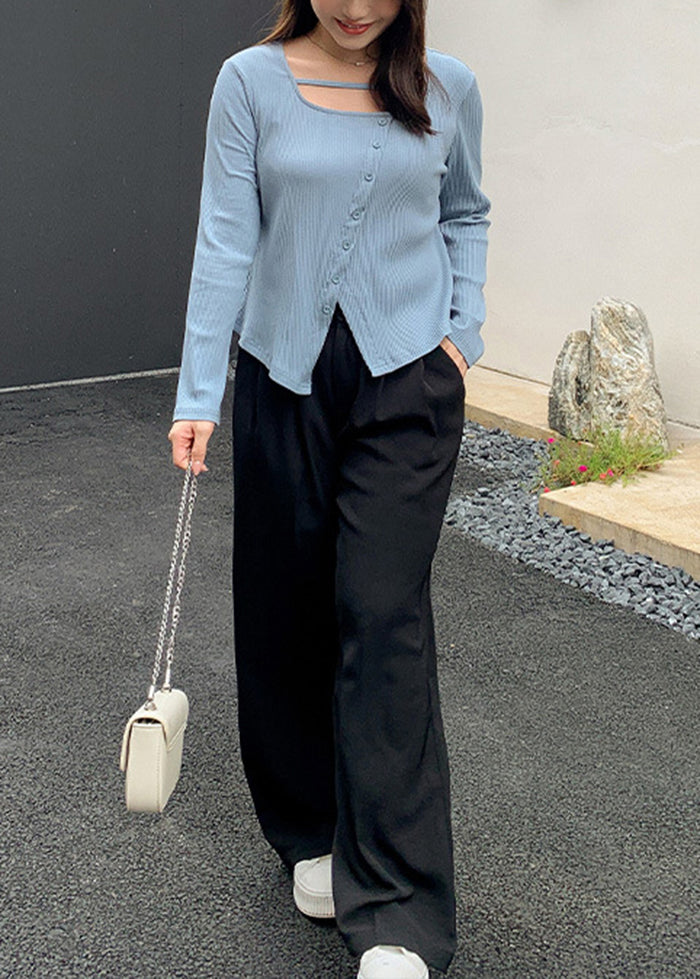 French Black Oversized Draping Spandex Wide Leg Pants Fall