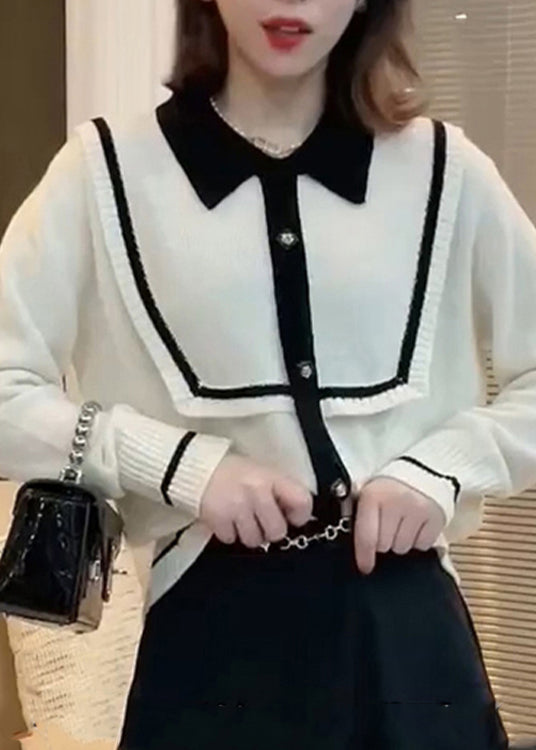 French Green Peter Pan Collar Patchwork Women Knitted Tops Fall