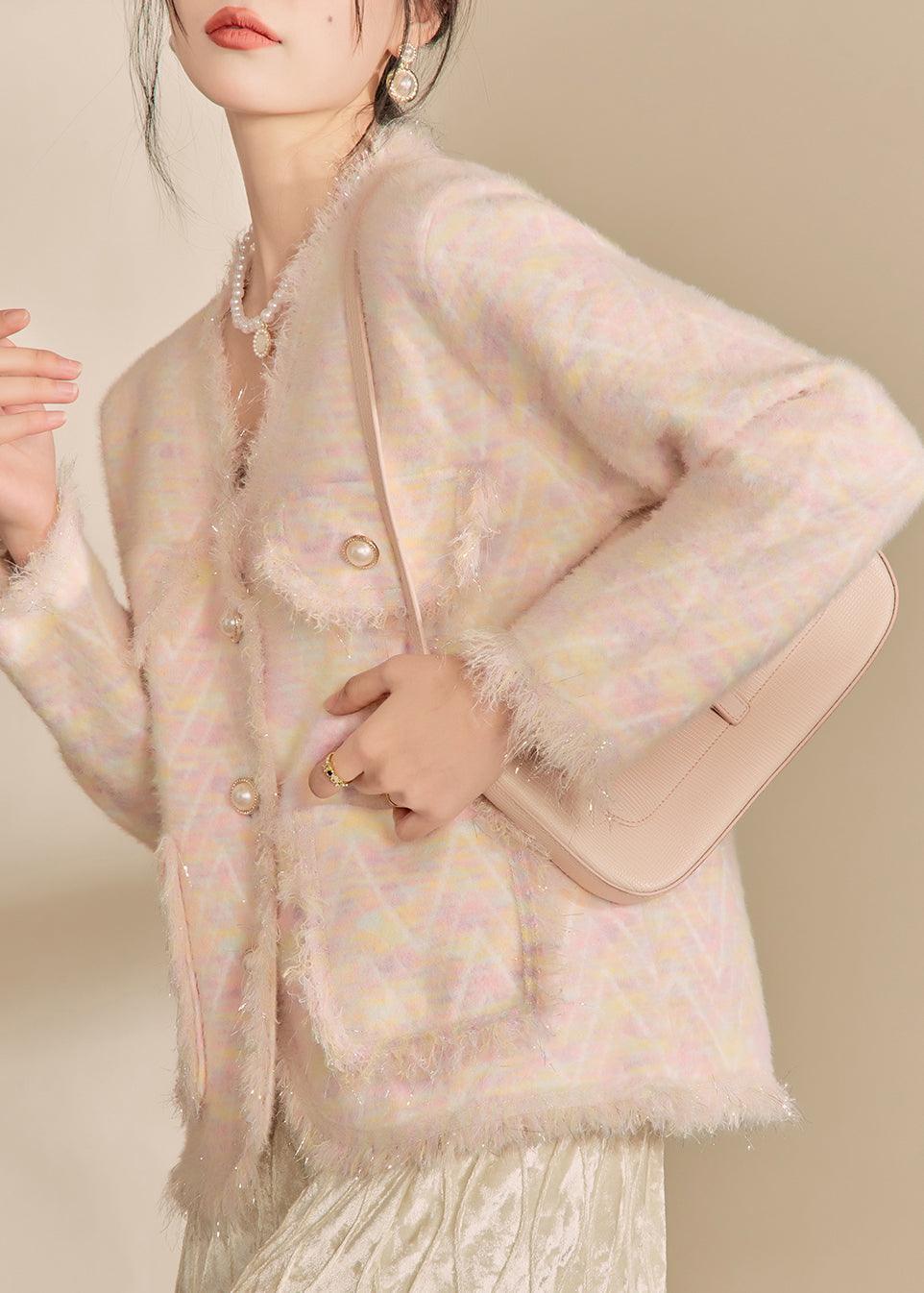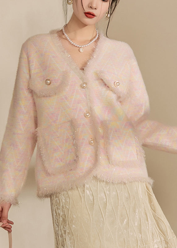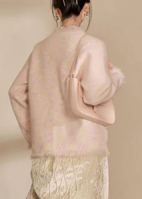 French Green V Neck Print Tassel Button Cotton Knit Cardigans Winter
