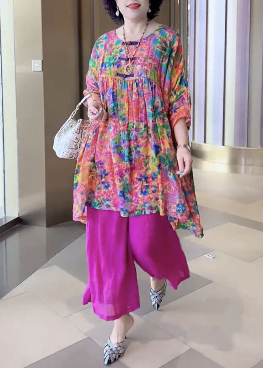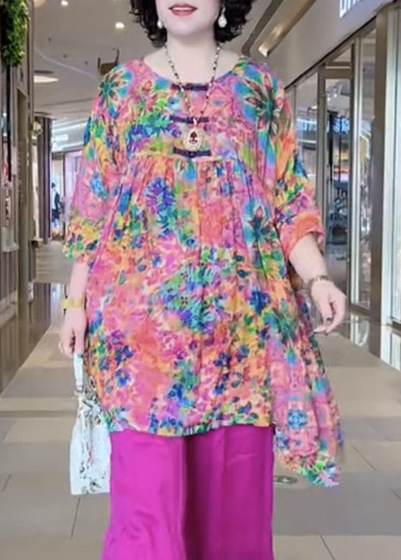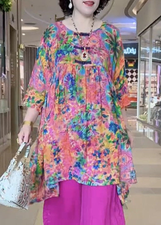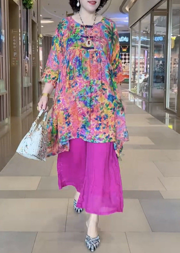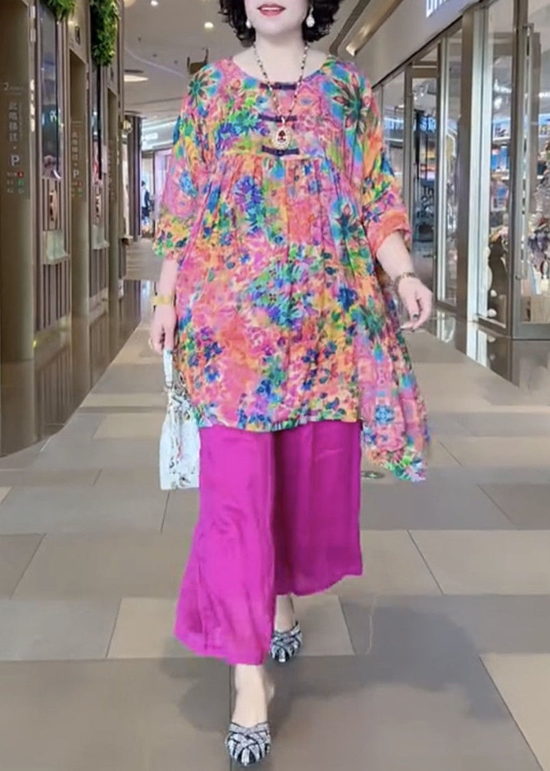 French O-Neck Print Cotton 2 Piece Bracelet Sleeve