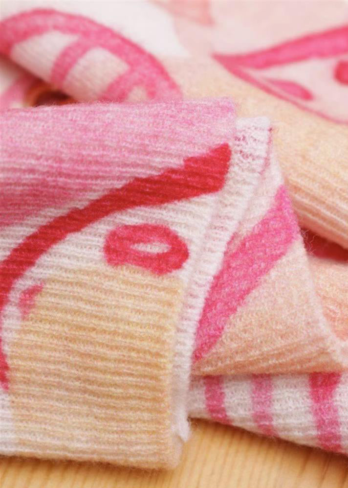 French Pink Print V Neck Button Knit Tops Long Sleeve