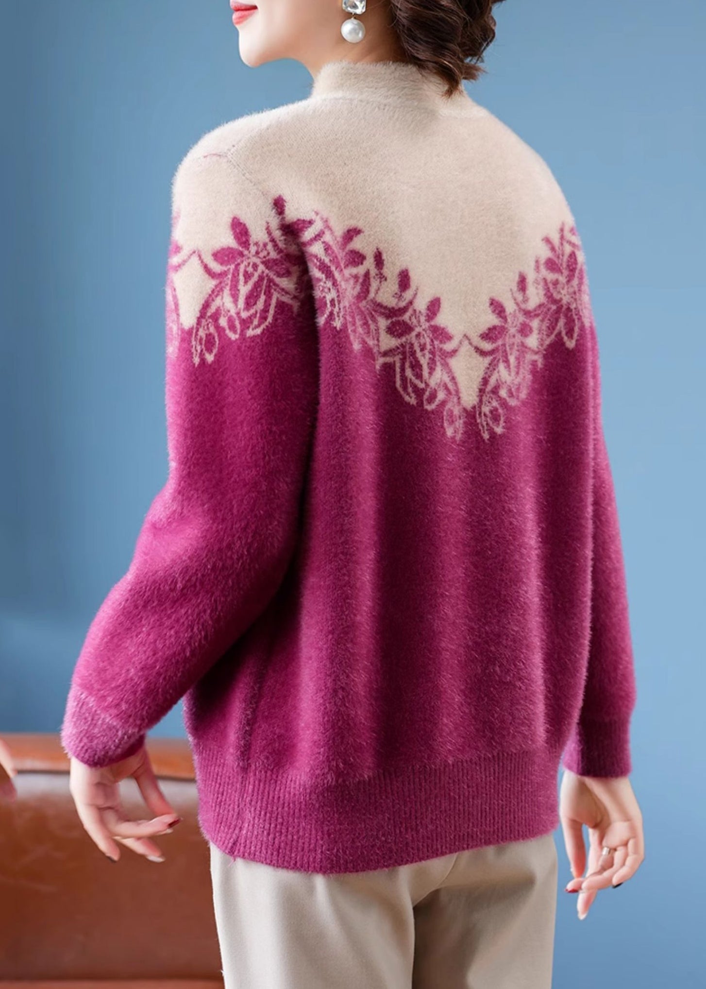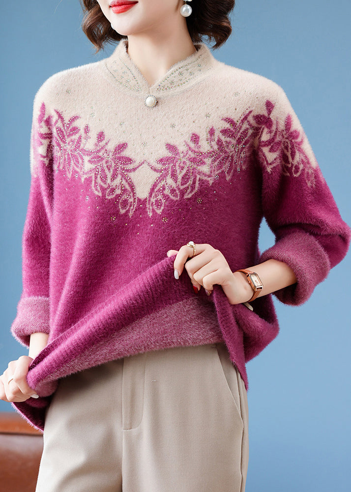 French Purple Stand Collar Warm Fleece Thick Mink Hair Knit Sweaters Winter