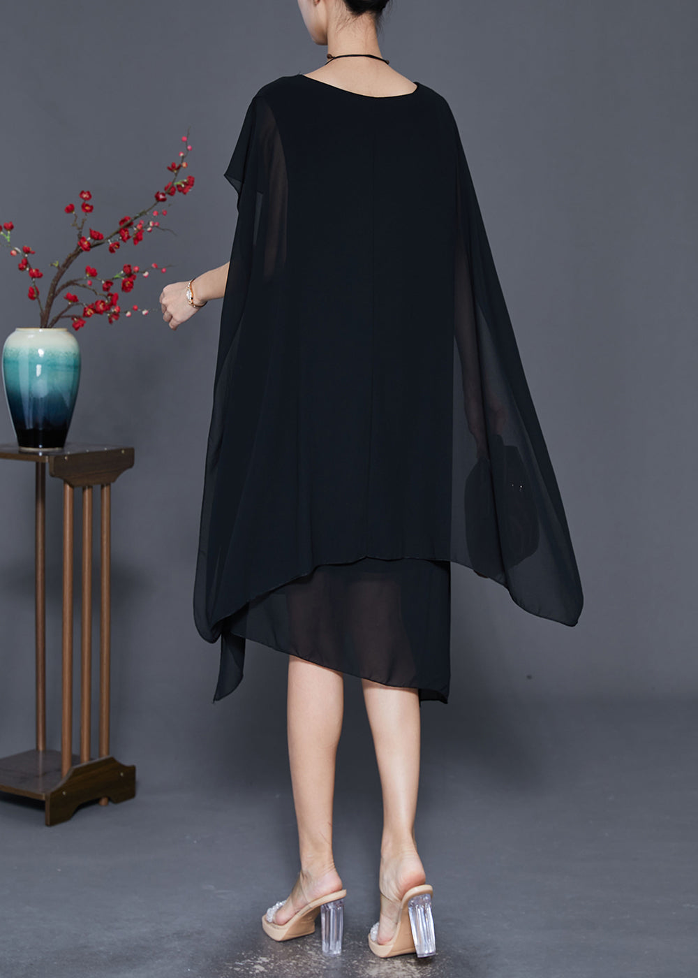 Handmade Black Asymmetrical Design Chiffon Maxi Dresses Summer