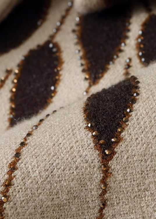 Italian Apricot O Neck Jacquard Zircon Patchwork Knit Dress Fall