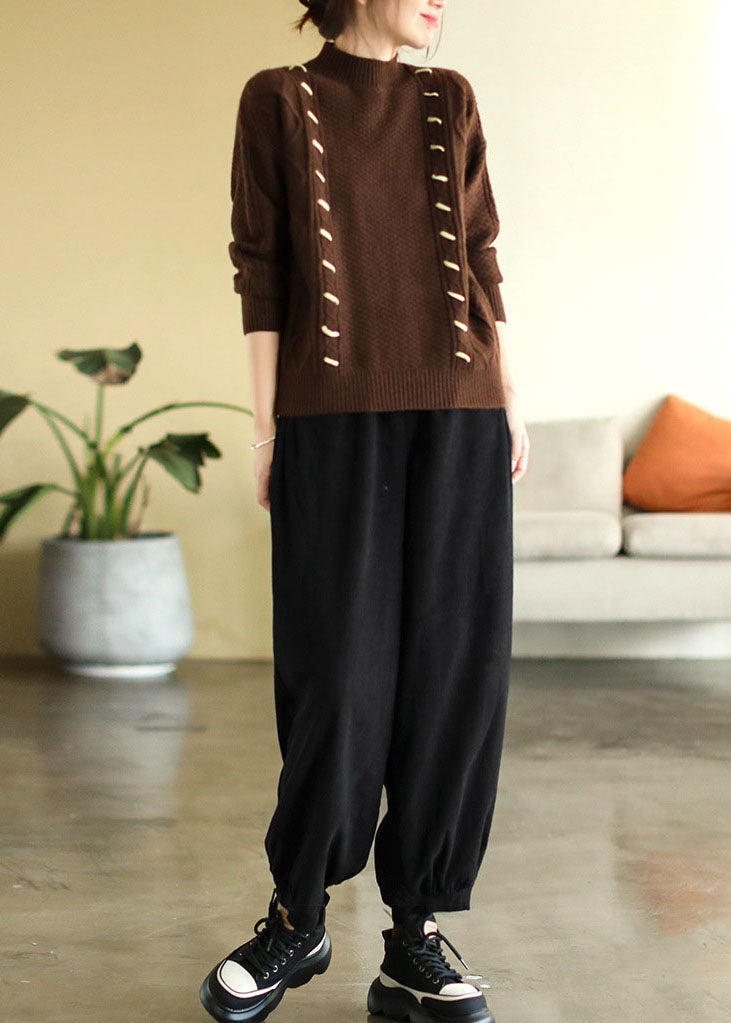 Italian Chocolate High Neck Slim Fit Thick Knit Sweater Tops Winter