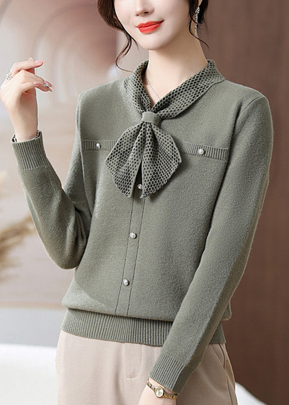 Italian Green Patchwork Cotton Knit Sweaters Fall