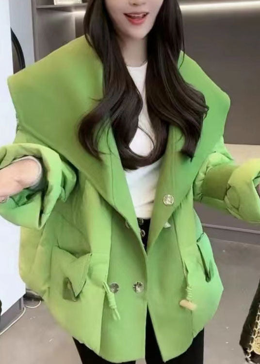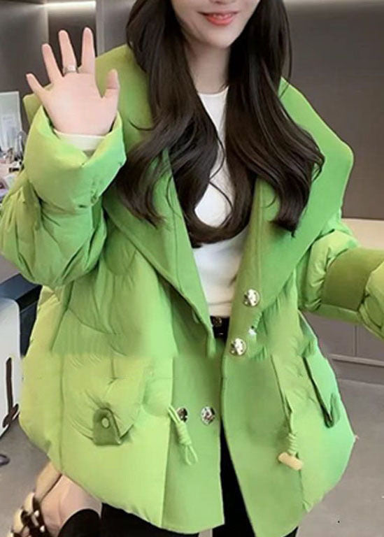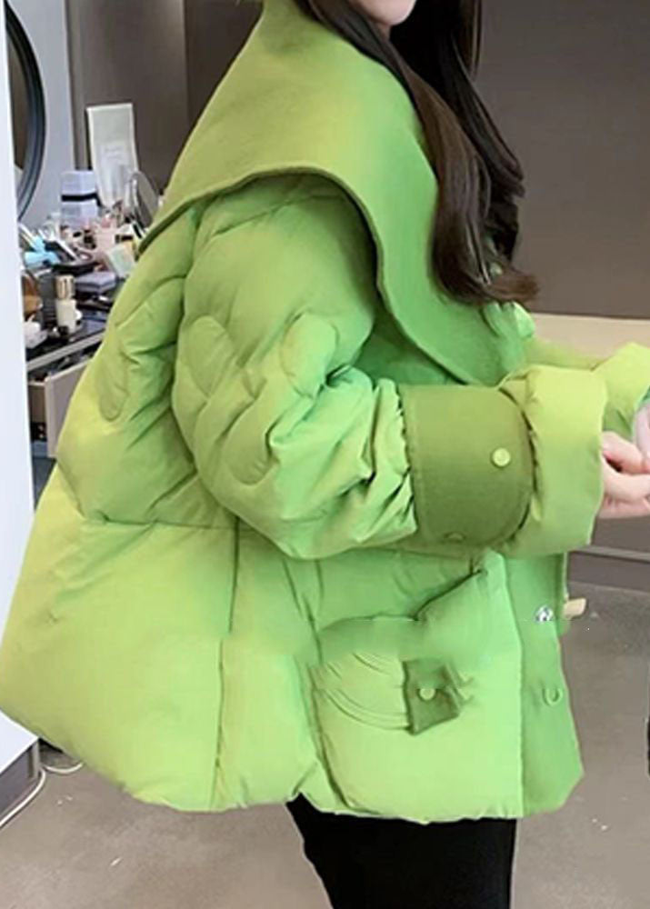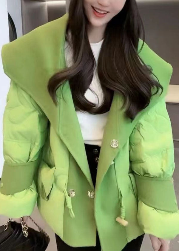 Italian Green Peter Pan Collar Patchwork Drawstring Fine Cotton Filled Parkaer Winter