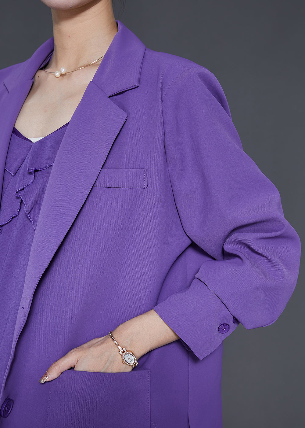 Italian Purple Ruffled Chiffon Spaghetti Strap Dress Two Piece Set Summer
