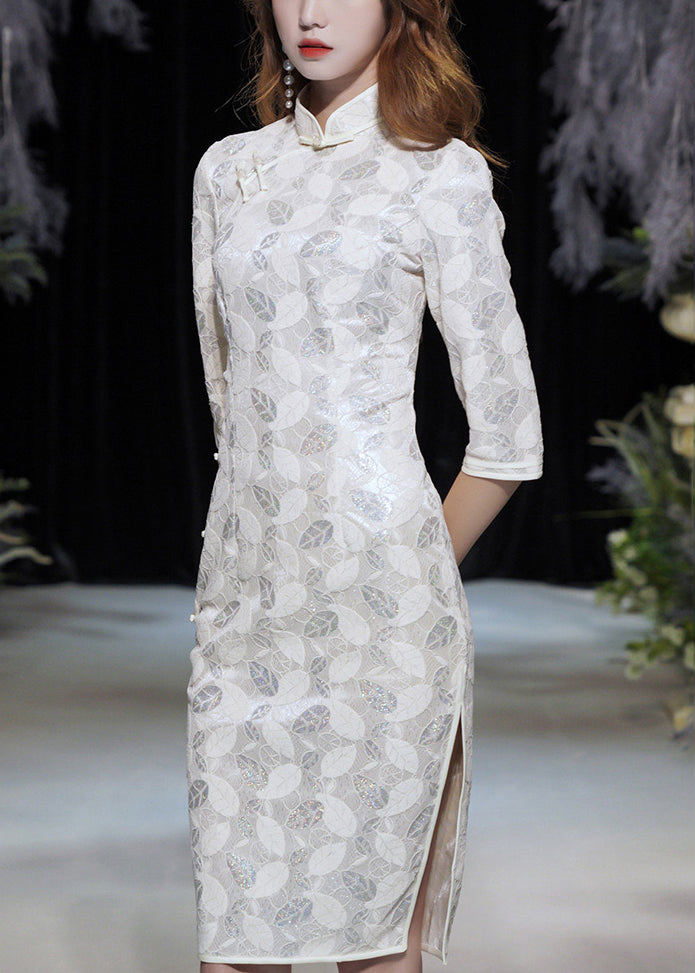 Italian Red Button Side Open Patchwork Lace Dress Bracelet Sleeve