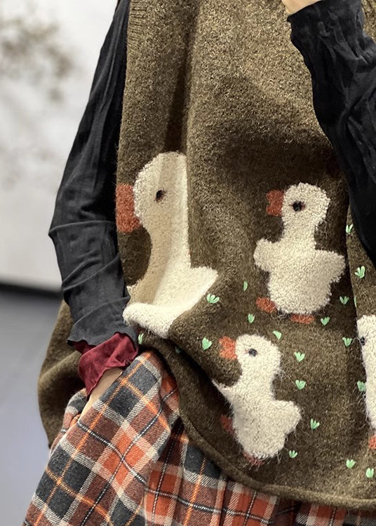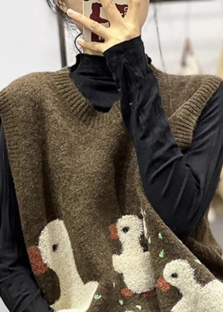 Jacquard Chocolate O-Neck Cozy Cotton Knit Waistcoat Sleeveless