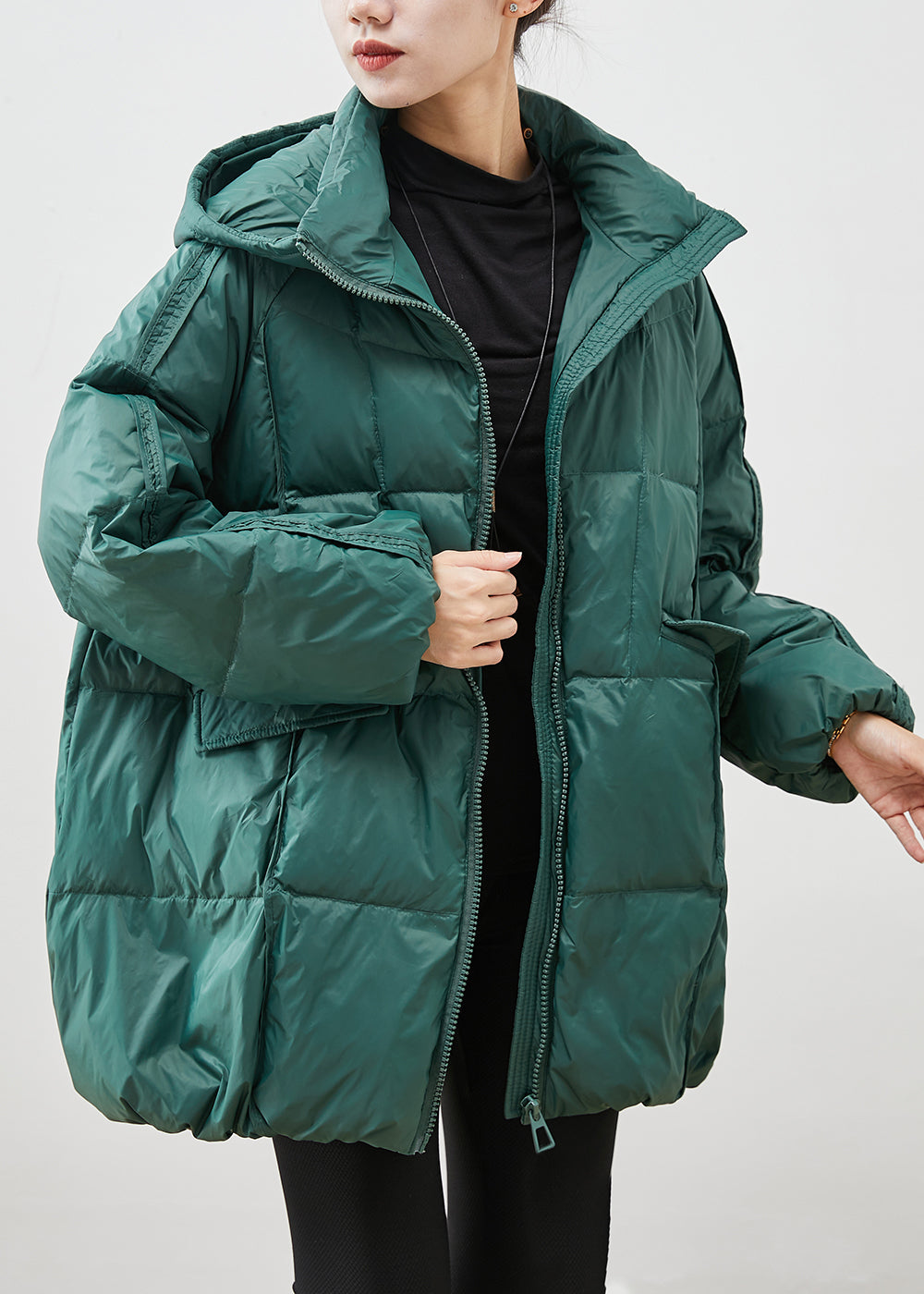Loose Green Hooded Zippered Duck Down Jackets Winter
