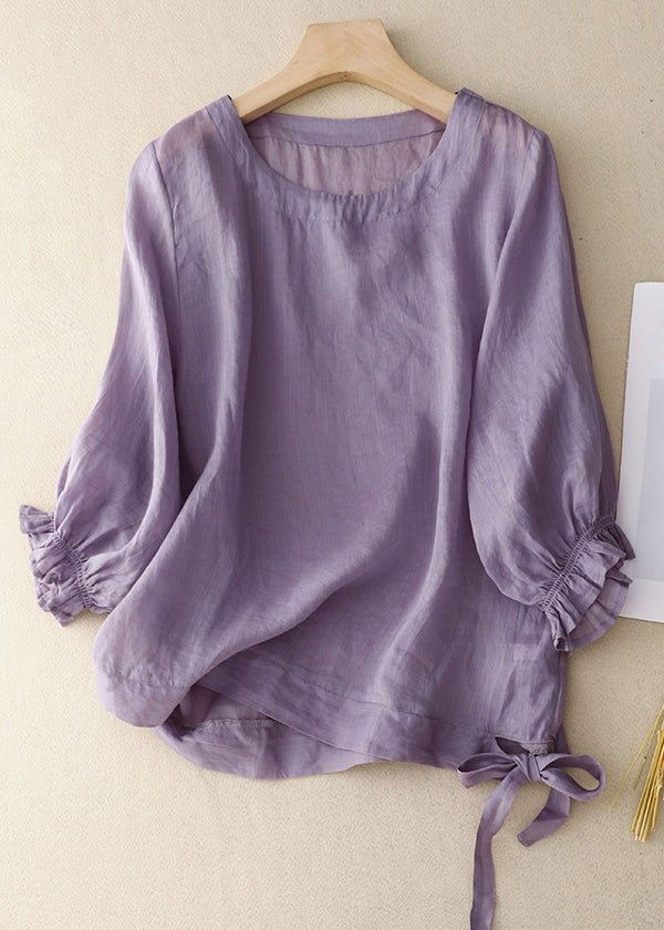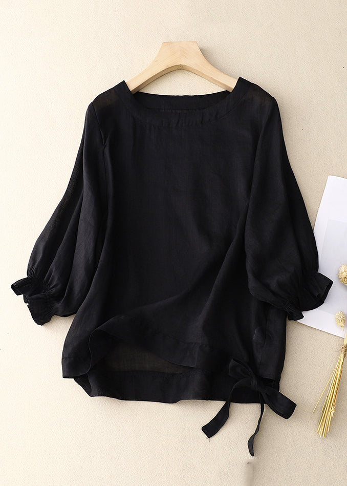 New Green O Neck Lace Up Cotton Shirt Bracelet Sleeve