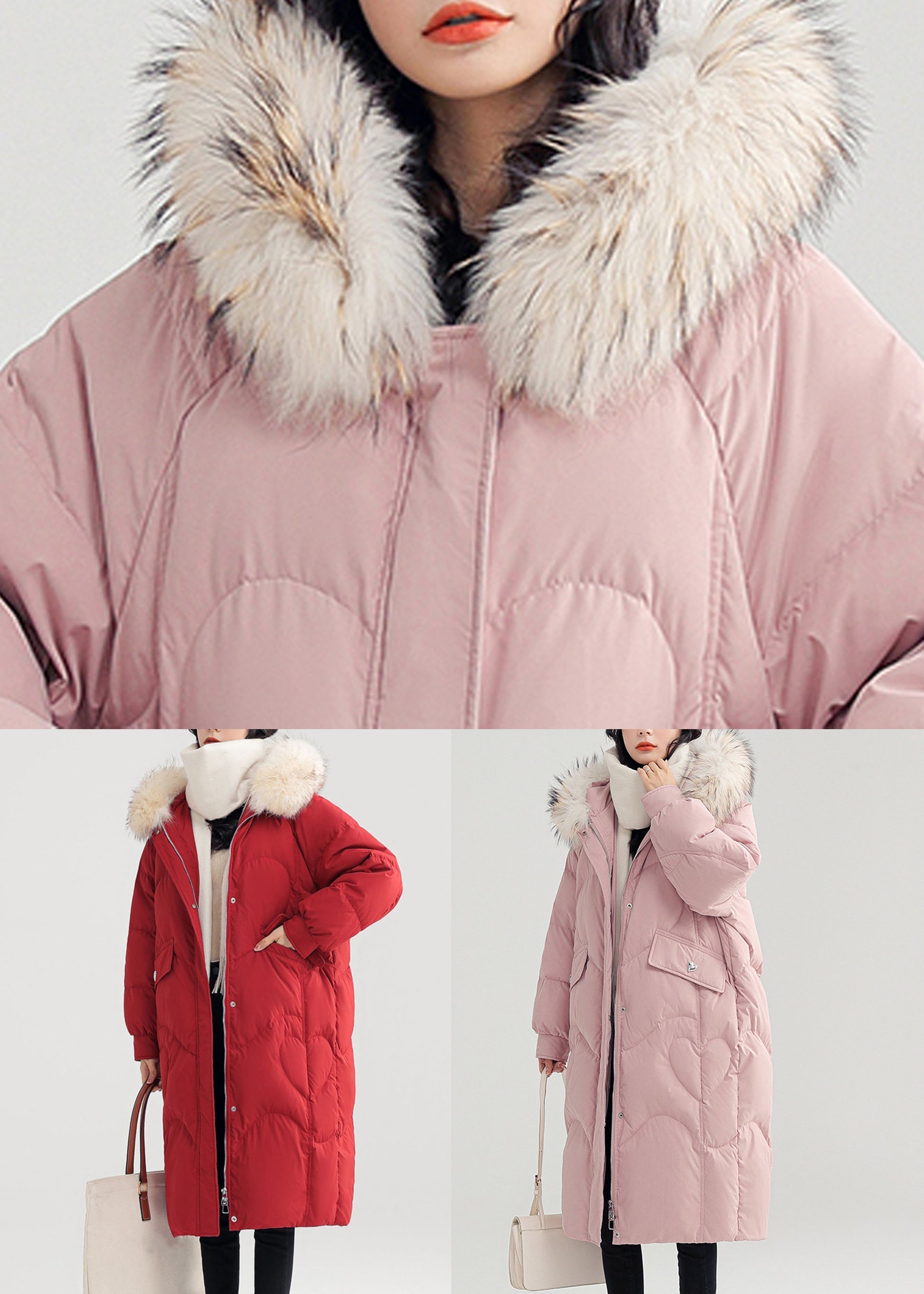 Pink Button Patchwork Duck Down Puffer Coat Zip Up Long Sleeve