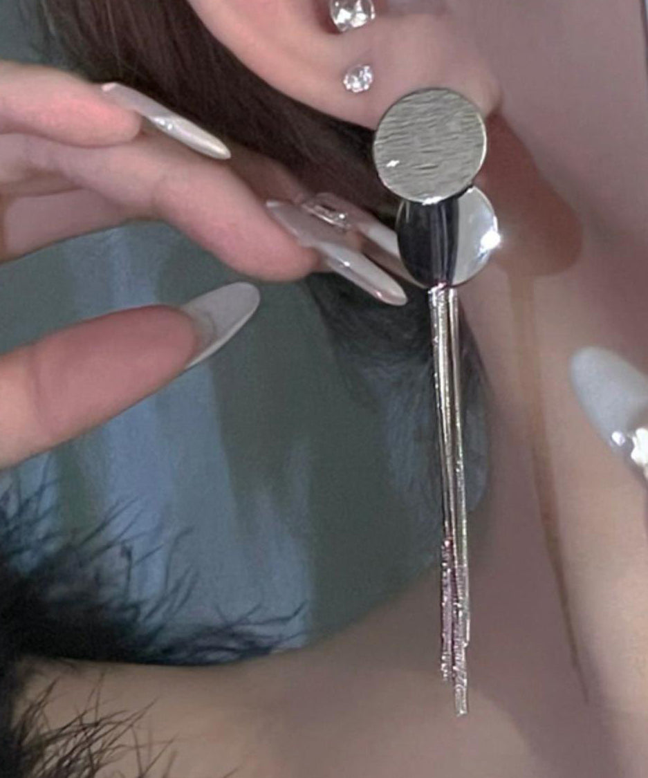 Simple Gold Copper Overgild Circle Tassel Drop Earrings