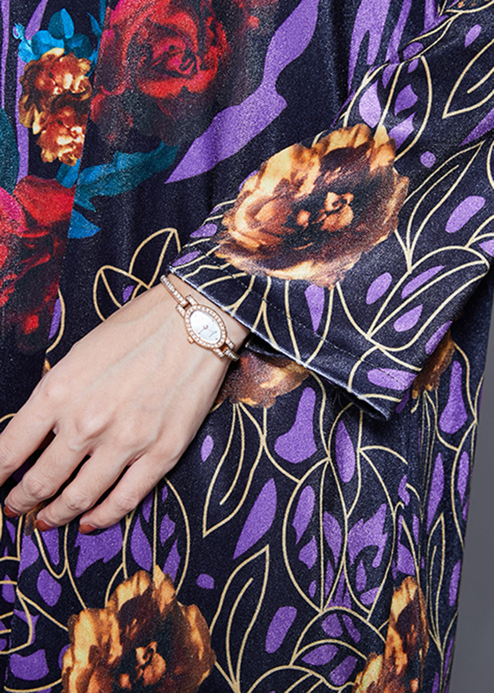 Simple Purple Oversized Print Silk Velour Holiday Dress Spring